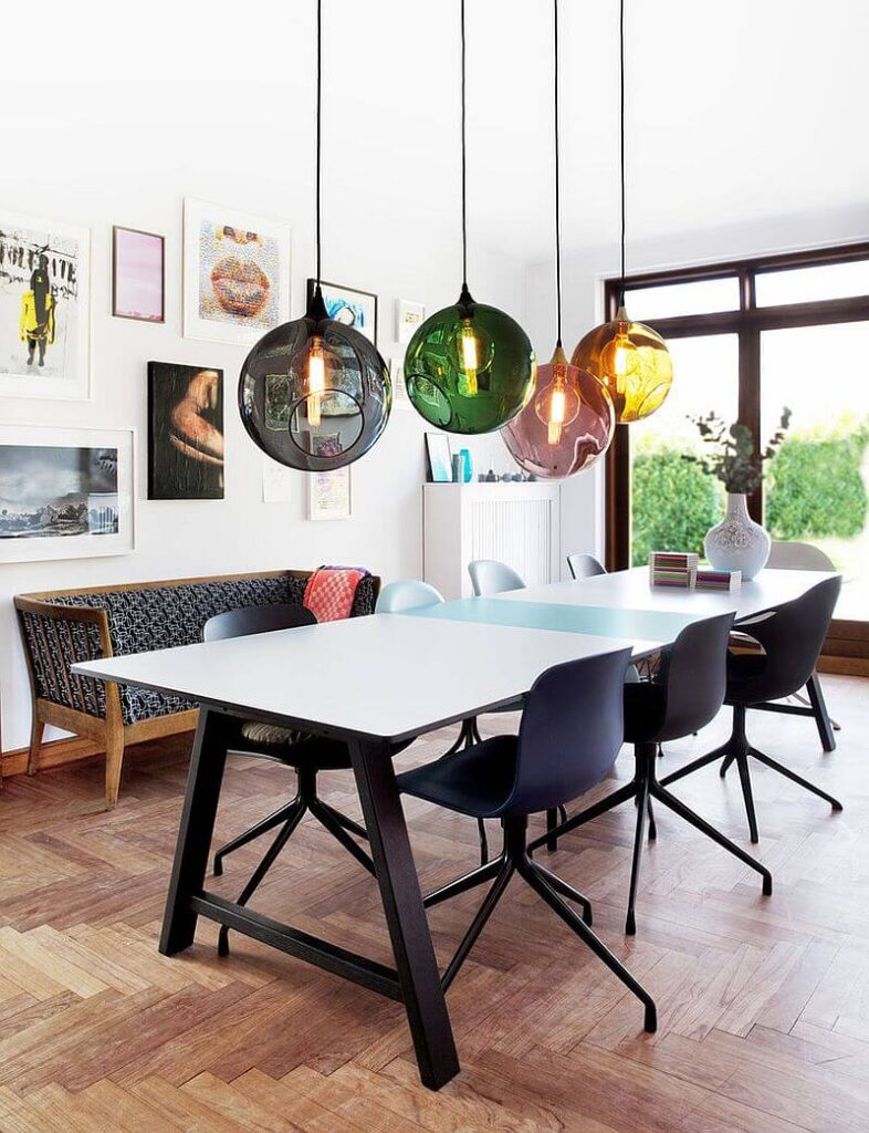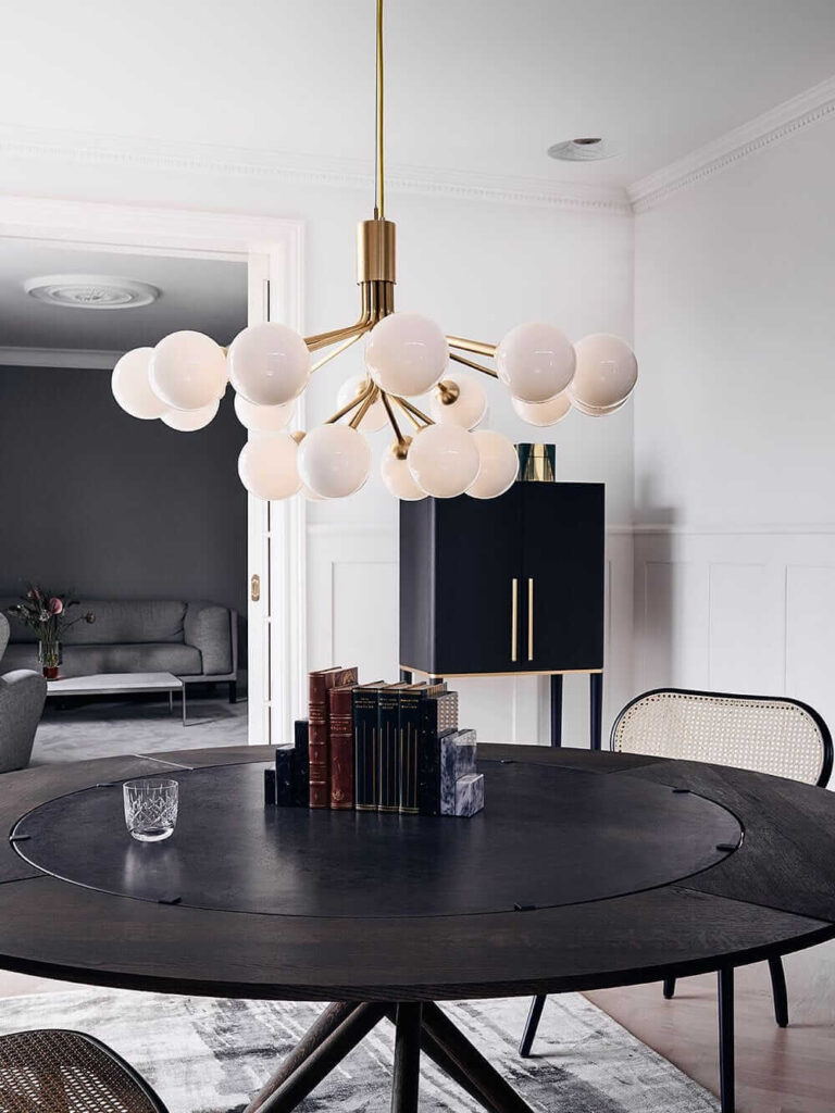 Ако има едно место во домот каде што треба да бидете смели со осветлувањето – тоа е над трпезариската маса. Тука, светлината не само што осветлува. Таа ја држи просторијата заедно.