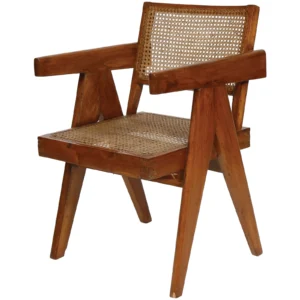 🇬🇧 Chandigarh Armchair is an iconic lounge chair designed by architect and designer Pierre Jeanneret in the 1950s for the public buildings of Chandigarh, India — a modernist city planned under the direction of Le Corbusier. Distinguished by its light yet sturdy solid-wood frame with V-shaped legs, woven cane seat and back, and clean lines, it blends functionality with the warmth of natural materials. Today it stands as a symbol of mid-century modern design and is frequently used as an accent piece in interiors.